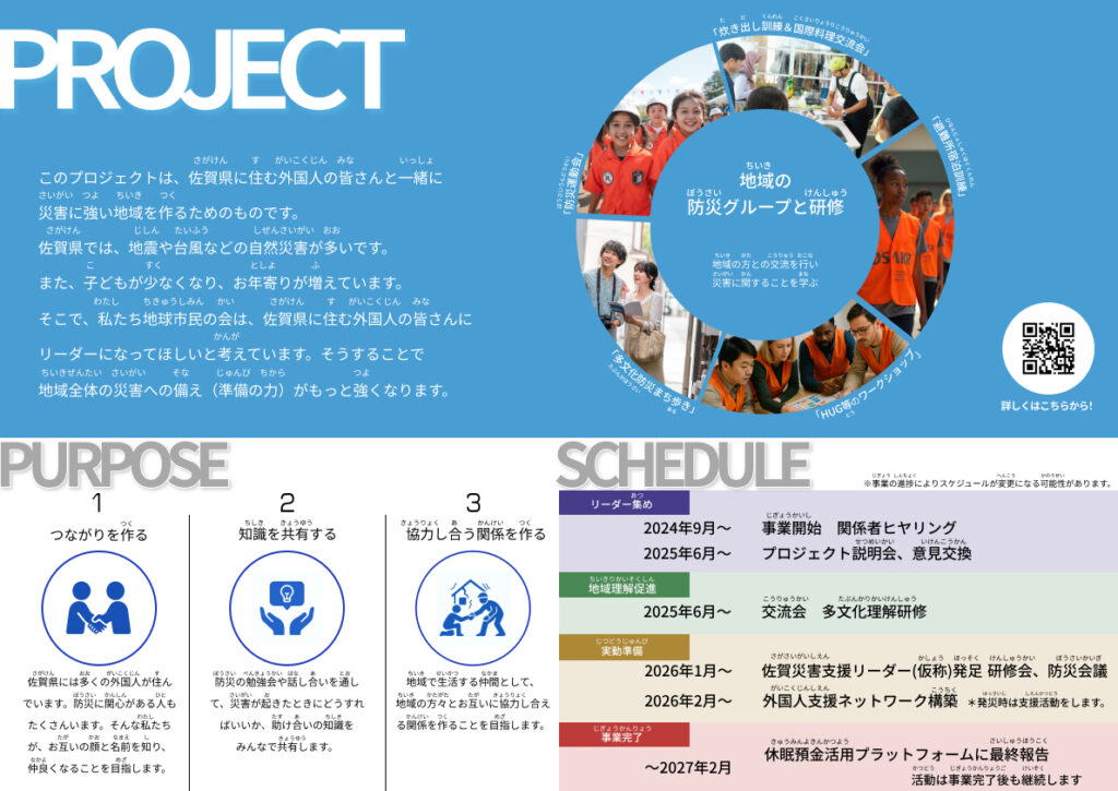 このパンフレットは、佐賀県に住む外国人の皆さんと一緒に災害に強い地域を作るためのプロジェクトを紹介するものです。